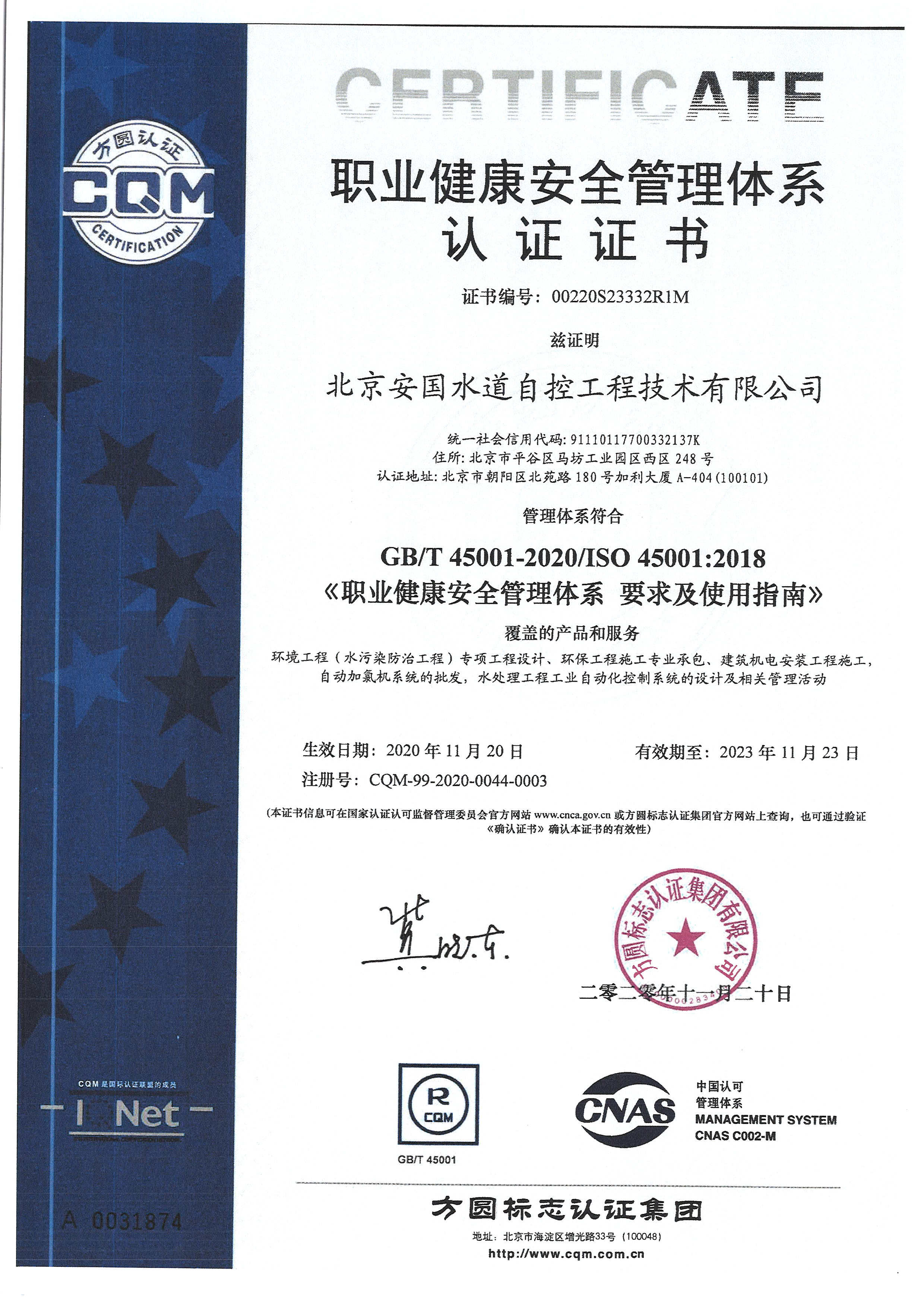 背景安國水道自控工程技術有限公司是注冊在北京市平谷區馬坊工業園區的高新技術企業,是中國水處理行業及自控領域的知名企業,在凈水廠、污水廠、循環水廠的水處理方面擁有國內領先的工藝技術及調試經驗。